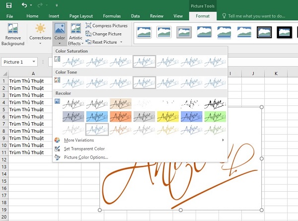 Cách để chỉnh màu chữ ký trong Excel như thế nào?