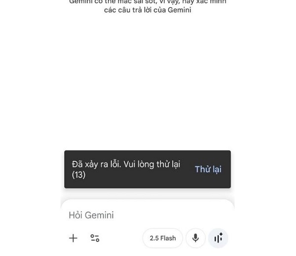 Trường hợp: Đã xảy ra lỗi 13 Gemini