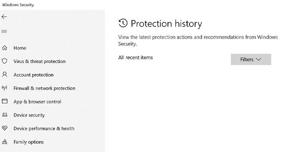 Trước tiên, bạn hãy mở Windows Security (hoặc phần mềm diệt virus bạn đang dùng) > Sau đó, bạn vào Virus & threat protection > Protection history.