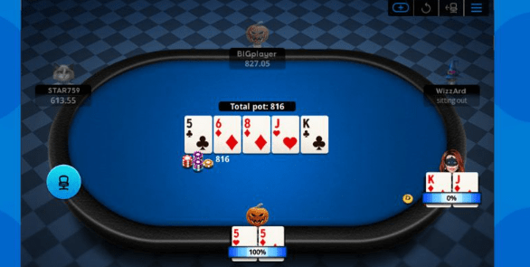 Vòng chơi sẽ kết thúc khi chỉ còn một người tiếp tục chơi trên bàn hoặc khi không còn ai tố thêm tiền nữa.