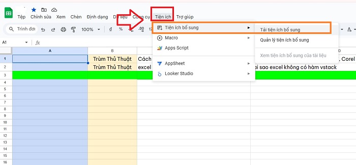 Hướng dẫn cách cài tiện ích bổ sung trên Google Sheet