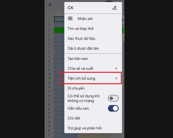 Tải tiện ích bổ sung Google Sheet điện thoại