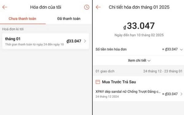 Hóa đơn SpayLater thường được tạo từ ngày 24 hằng tháng, tuy nhiên thời điểm xuất hiện nút thanh toán lại không cố định cho tất cả tài khoản. Thay vào đó, hệ thống sẽ mở tính năng này trong khoảng từ ngày 24 tháng hiện tại cho đến ngày 10 của tháng kế tiếp. Trong khung thời gian đó, bạn có thể truy cập mục thanh toán và lựa chọn trả các khoản nợ đến hạn.
