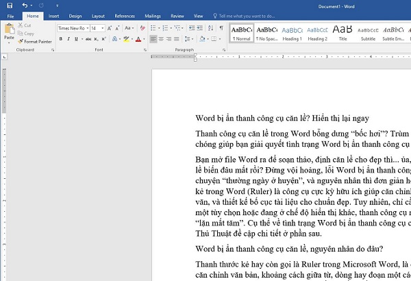 Word bị ẩn thanh công cụ căn lề, nguyên nhân do đâu?