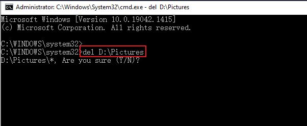 - B2: Nhập lệnh del drive:\path\filename và nhấn Enter để chạy lệnh. Trong đó: