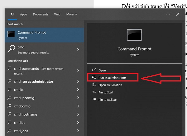 - B1: Bạn mở cmd với quyền quản trị viên như hướng dẫn ở b1 cách 1.